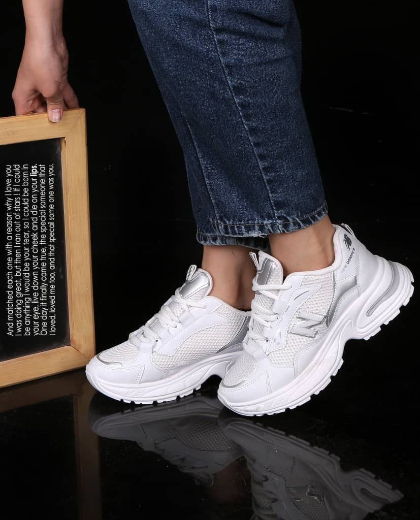 تخفیف حیرت انگیز کفش کتونی اسپرت زنانه دخترانه مدل نیوبالانس جذاب و خاص رنگ سفید نقره ای با ارسال رایگان