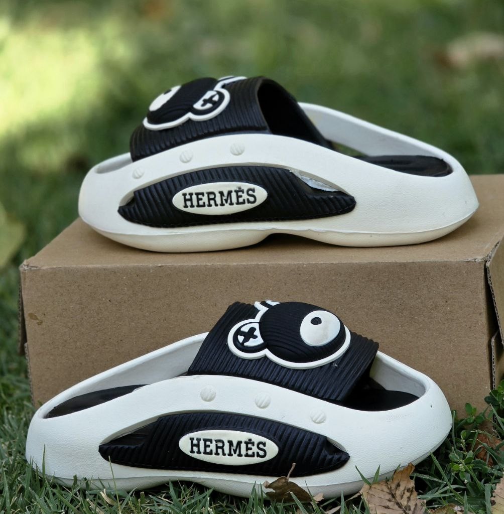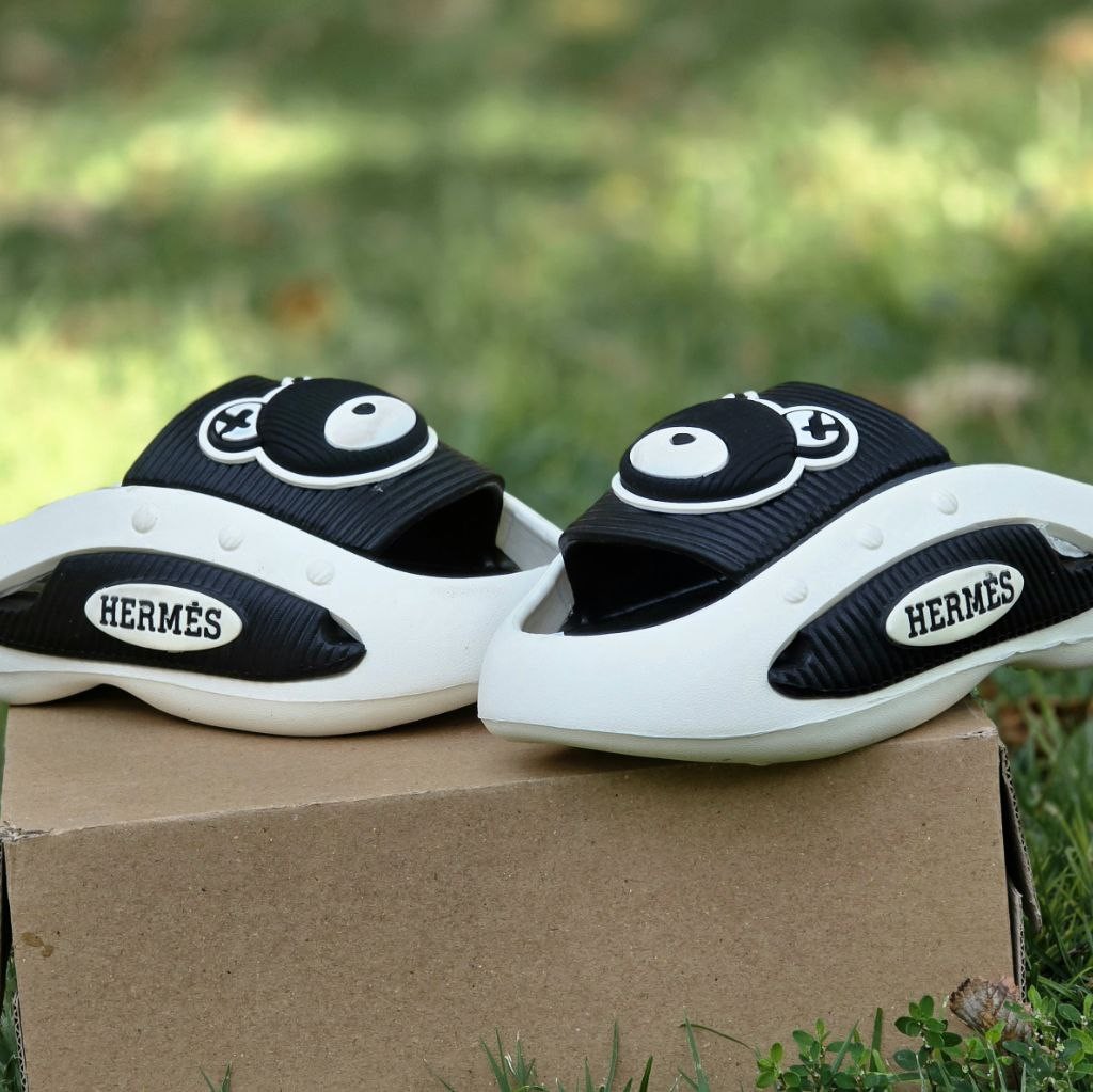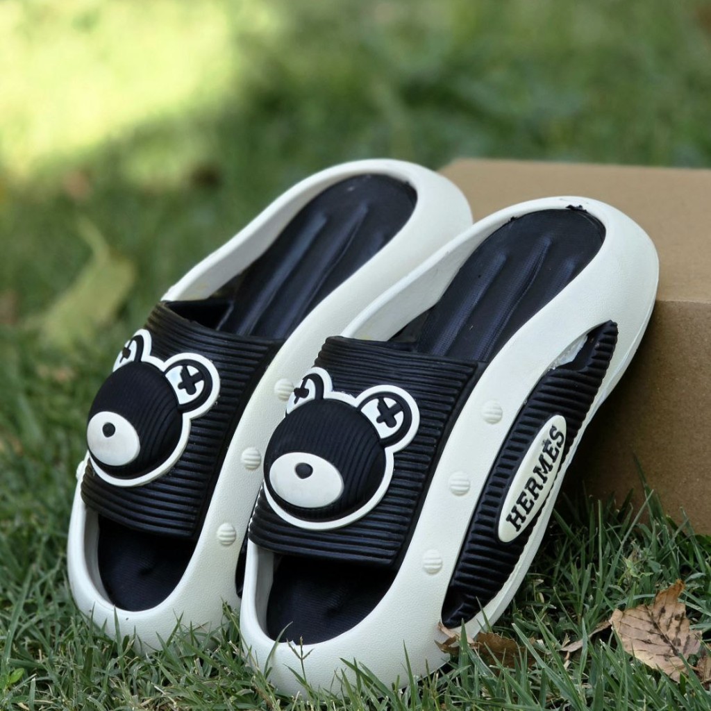 فروش شکوهمند دمپایی صندل زنانه دخترانه کرومی مدل جسیکا با طرح خرسی سبک وزن و بی نظیر رنگ سفید مشکی باارسال رایگان