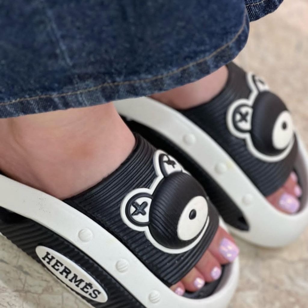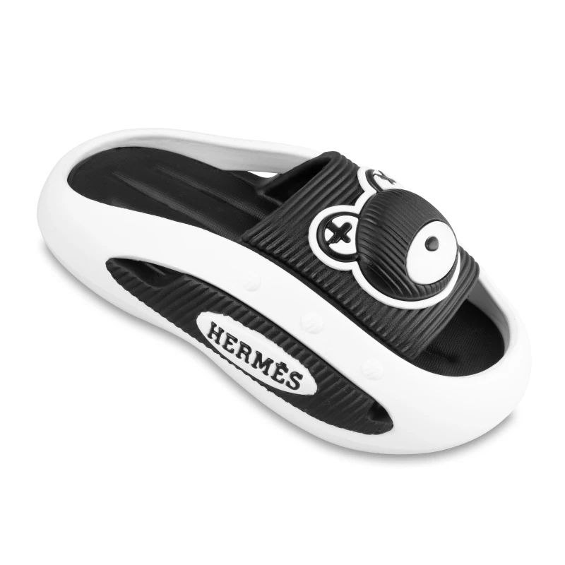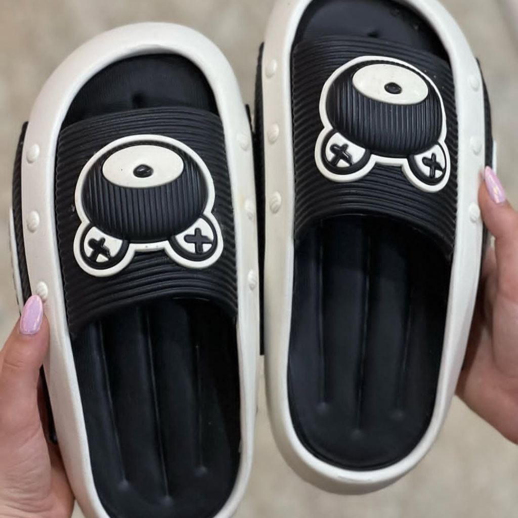 فروش دل ربا دمپایی صندل زنانه دخترانه کرومی مدل جسیکا با طرح خرسی نرم و اصیل رنگ سفید مشکی باارسال رایگان