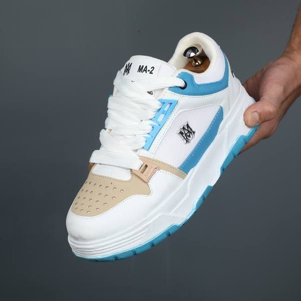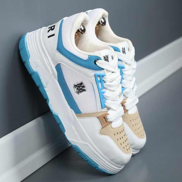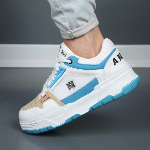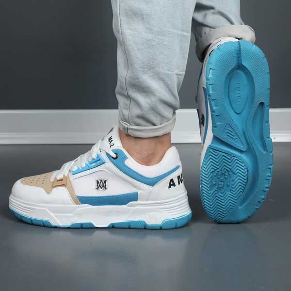 حراج خارق العاده کفش کتونی اسپرت مردانه پسرانه مدل Amiri (امیری) کلاسیک و شیک رنگ سفید ابی کرم با ارسال رایگان