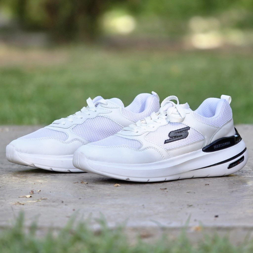 فروش هیجان انگیز کفش کتونی اسپرت مردانه و پسرانه بزرگپا مدل اسکیچرز عالی و منحصر به فرد رنگ سفید تمام با ارسال رایگان