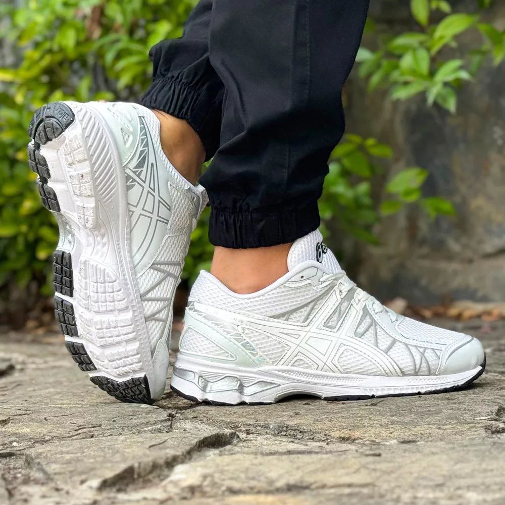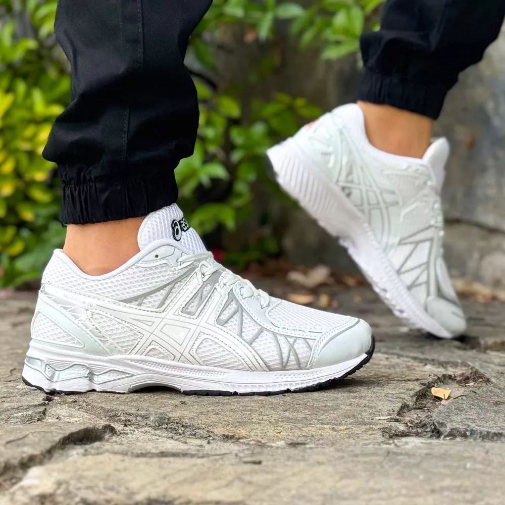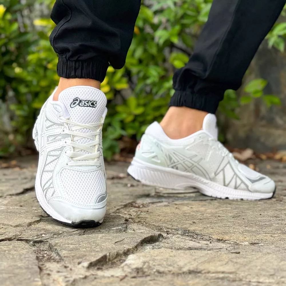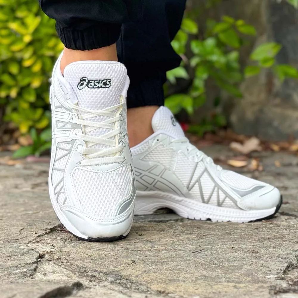 حراج فوق العاده بی نظیر کفش کتونی اسپرت مردانه و پسرانه مدل اسیکس طراحی خاص رنگ سفید طوسی با ارسال رایگان