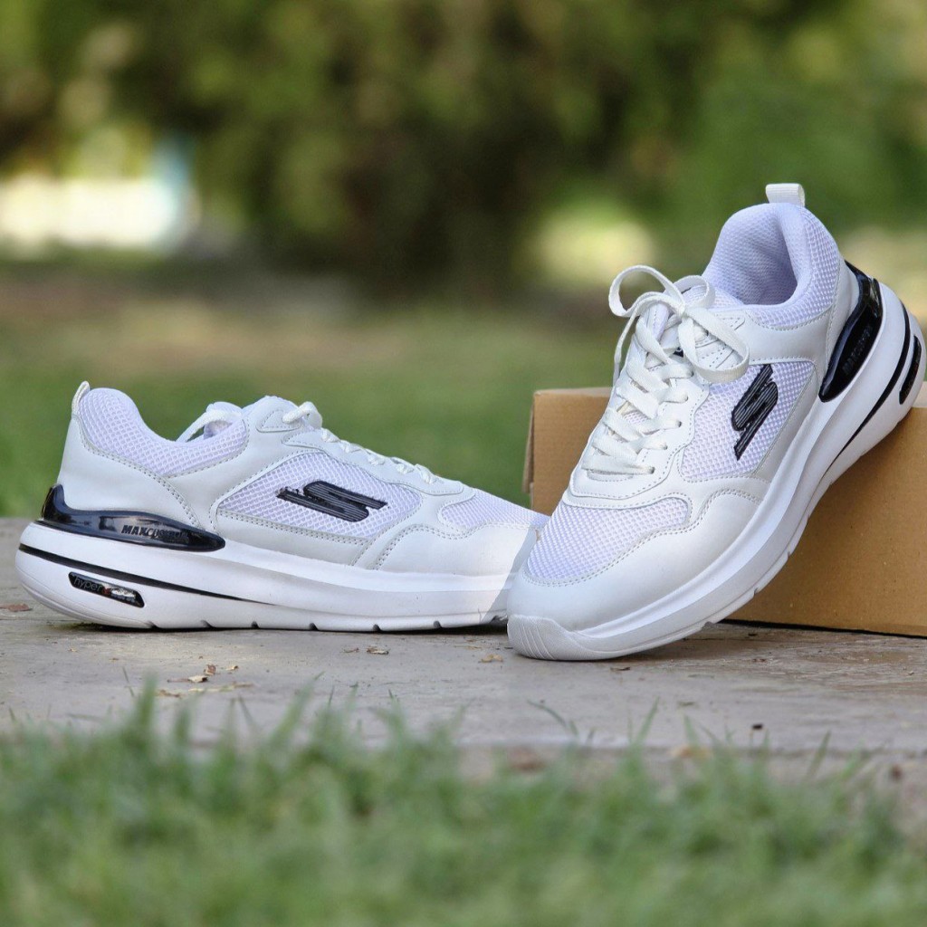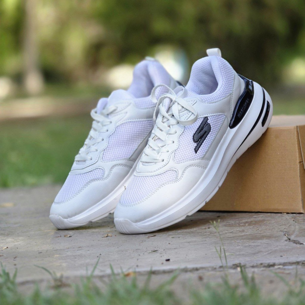 فروش واقعی کفش کتونی اسپرت مردانه و پسرانه بزرگپا مدل اسکیچرز سبک وزن و بادوام بالا رنگ سفید تمام با ارسال رایگان
