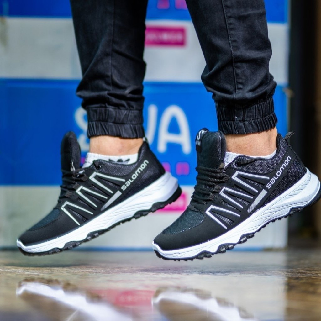 حراج جدید کفش کتونی اسپرت مردانه پسرانه مدل سالامون با دوام و باکیفیت رنگ مشکی سفید با ارسال رایگان