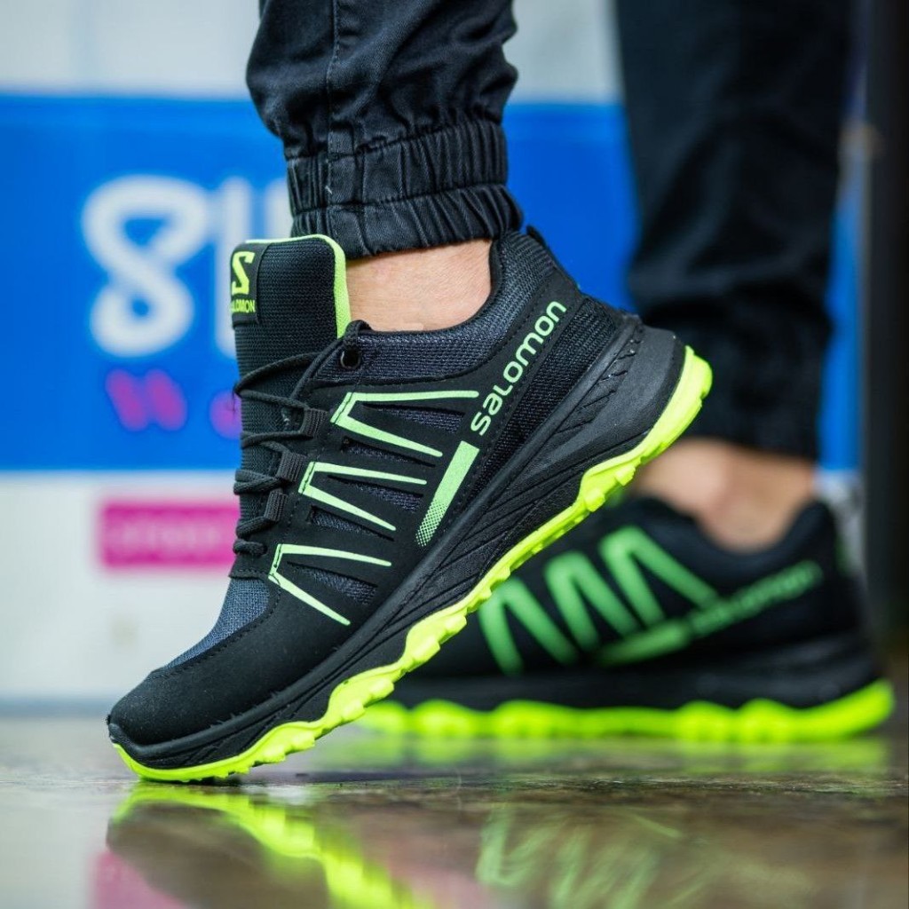 فروش ویژه کفش کتونی اسپرت مردانه پسرانه مدل سالامون جدید و مقاوم رنگ مشکی سبز با ارسال رایگان