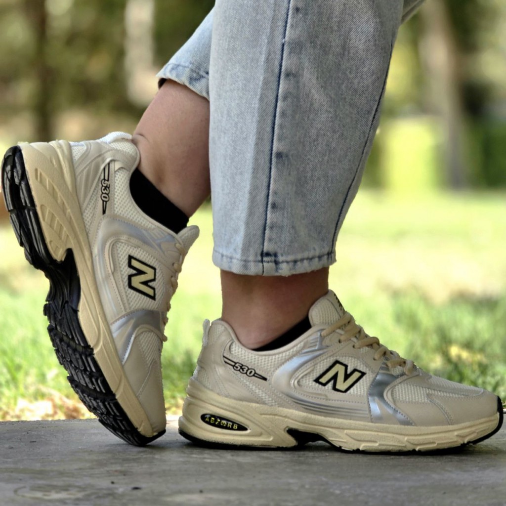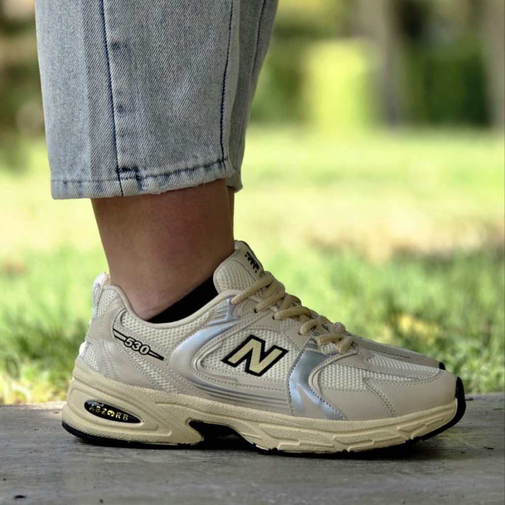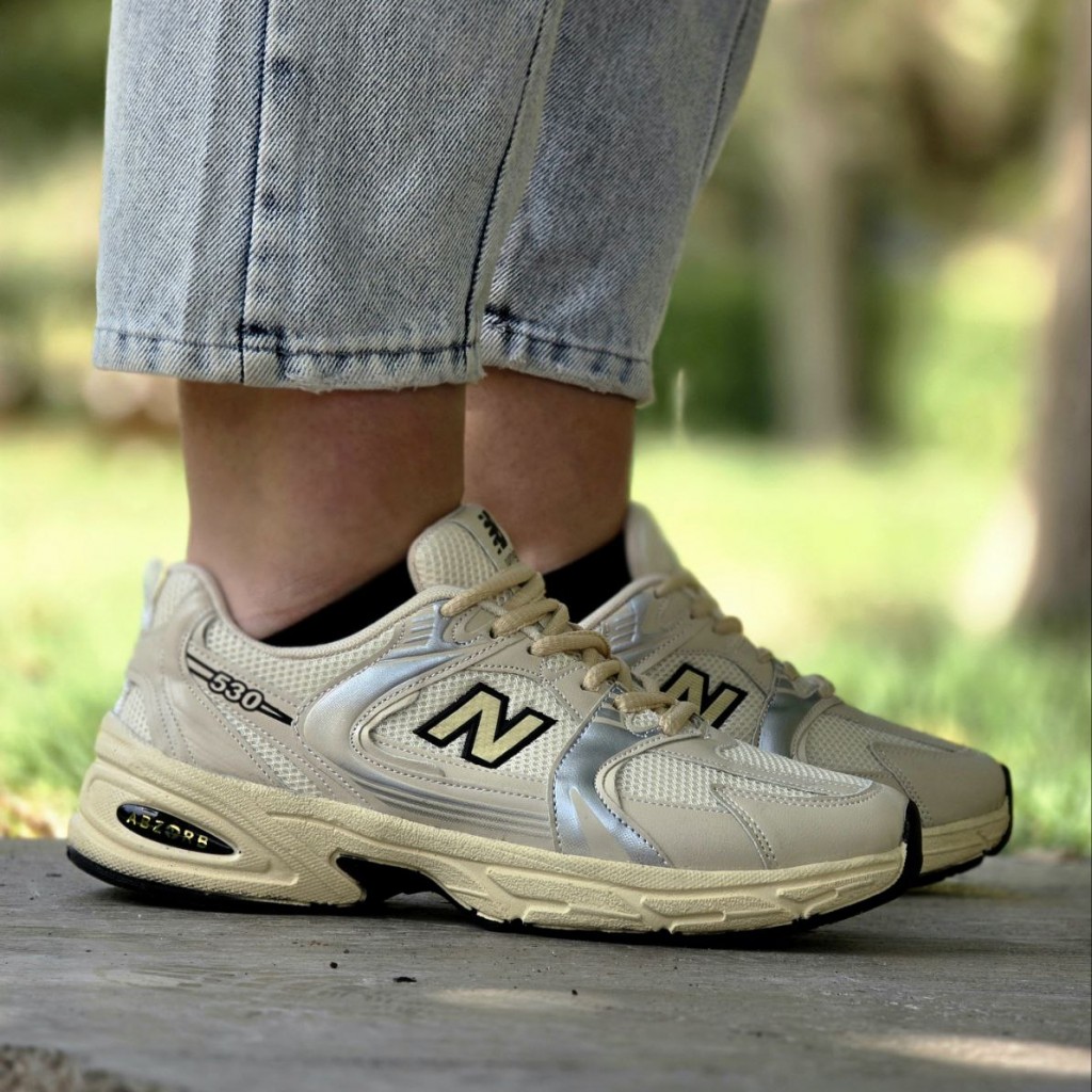 حراج استثنایی کفش کتونی اسپرت مردانه و زنانه مدل نیوبالانس 530 باکیفیت و خاص رنگ کرم نقره ای با ارسال رایگان