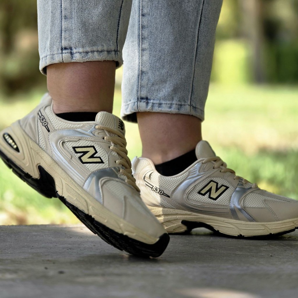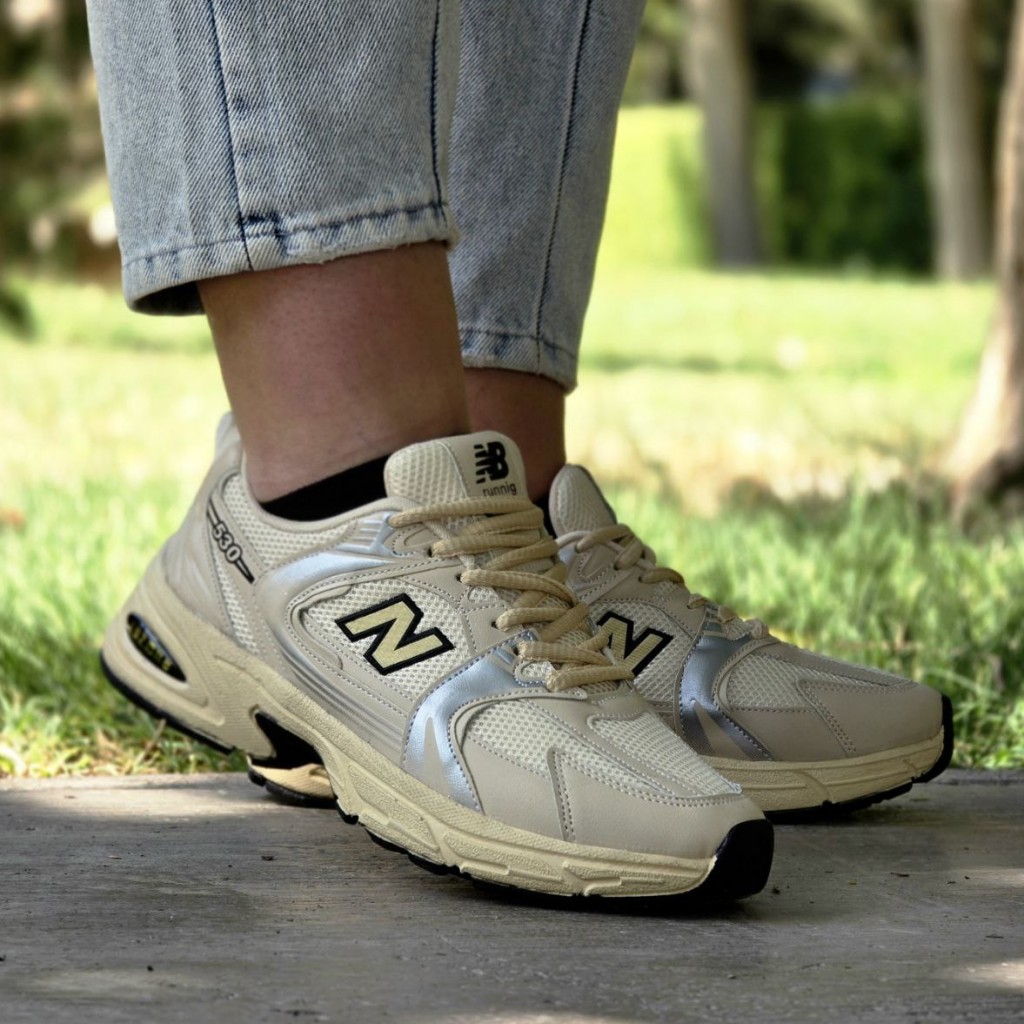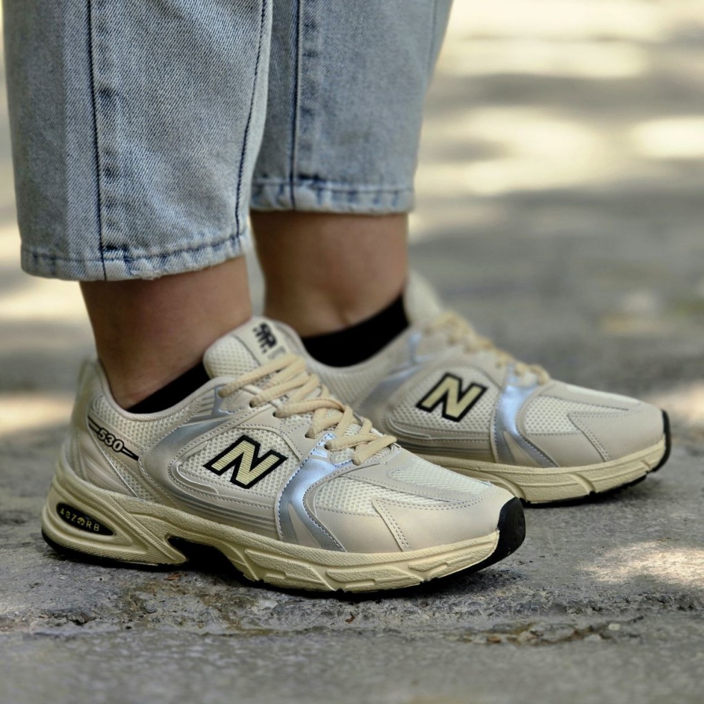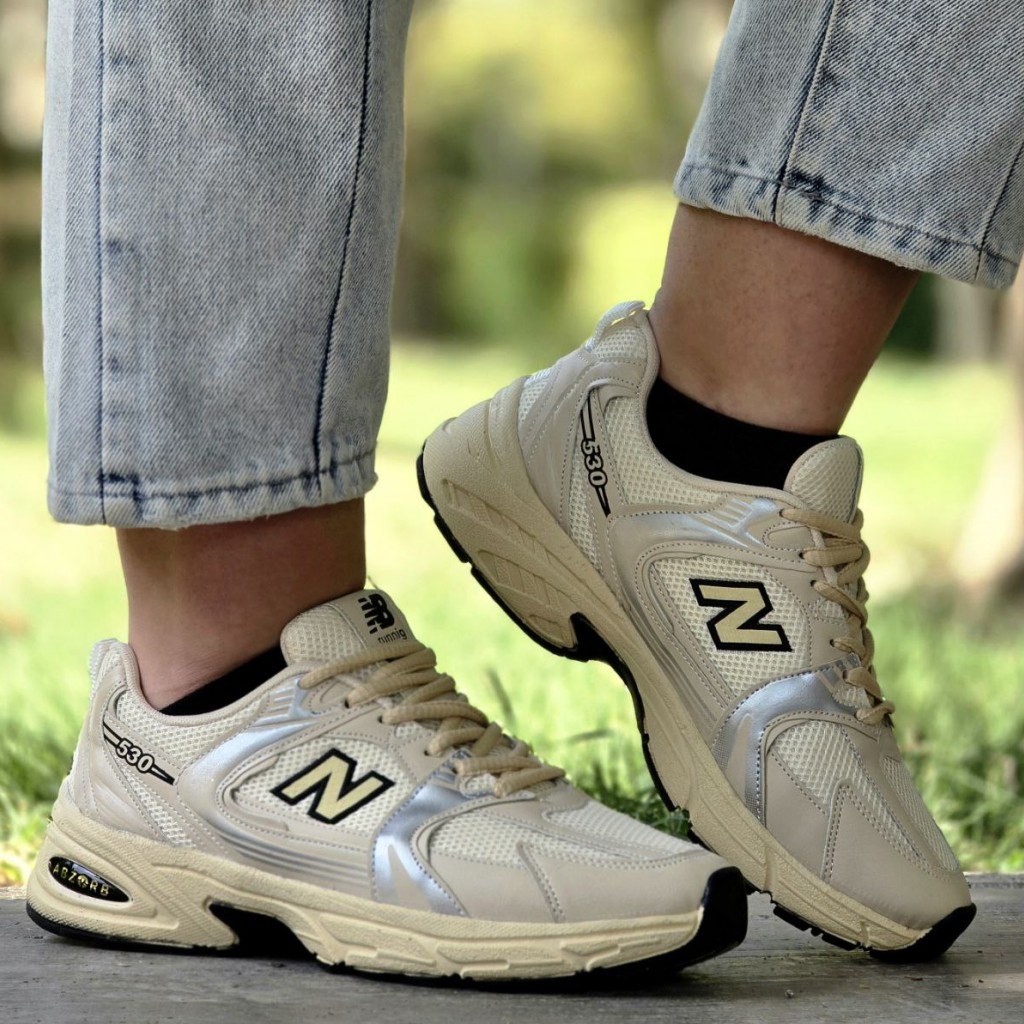 حراج استثنایی کفش کتونی اسپرت مردانه و زنانه مدل نیوبالانس 530 باکیفیت و خاص رنگ کرم نقره ای با ارسال رایگان