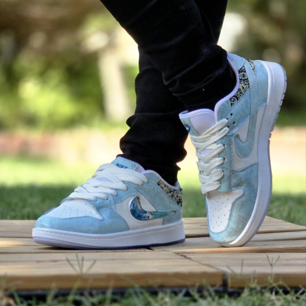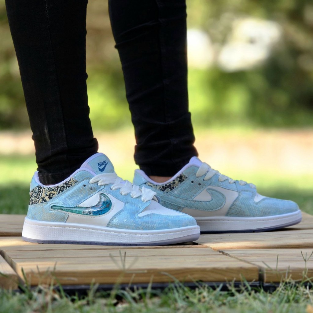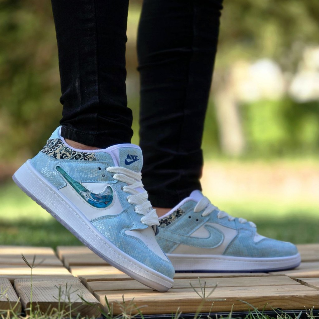 حراج ویژه کفش کتونی اسپرت ست نایک دراگون زنانه و مردانه شیک رنگ آبی سفید با ارسال رایگان