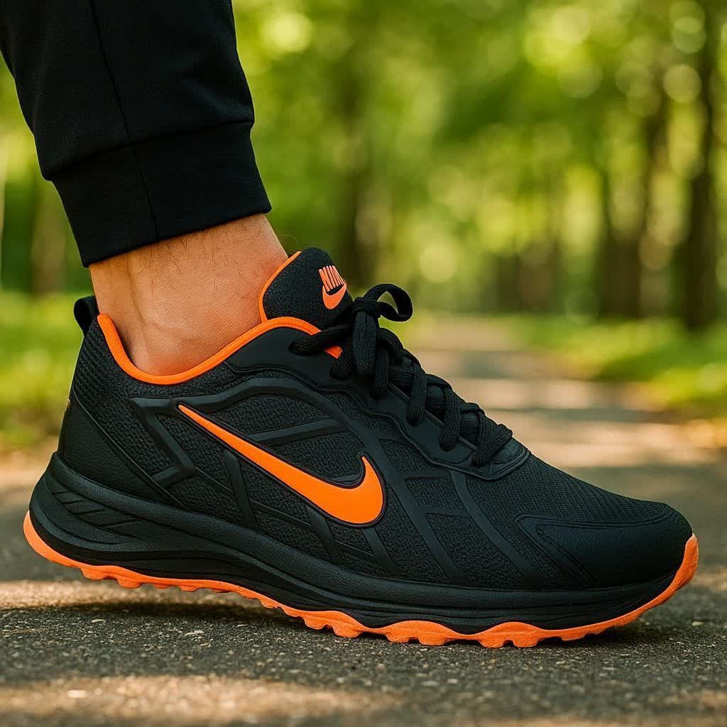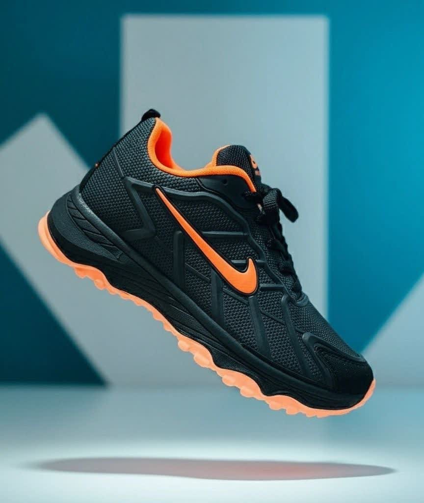 حراج جدیدکفش کتونی اسپرت نایک مردانه بادوام و به روز رنگ مشکی نارنجی با ارسال رایگان