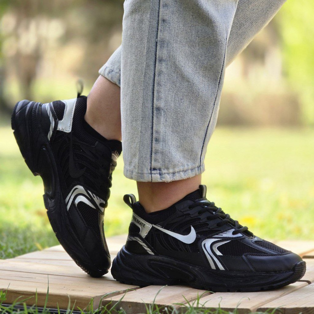 فروش تکرار نشدنی کفش کتونی اسپرت زنانه دخترانه مدل نایک سبک وزن و شیک رنگ مشکی نقره ای با ارسال رایگان