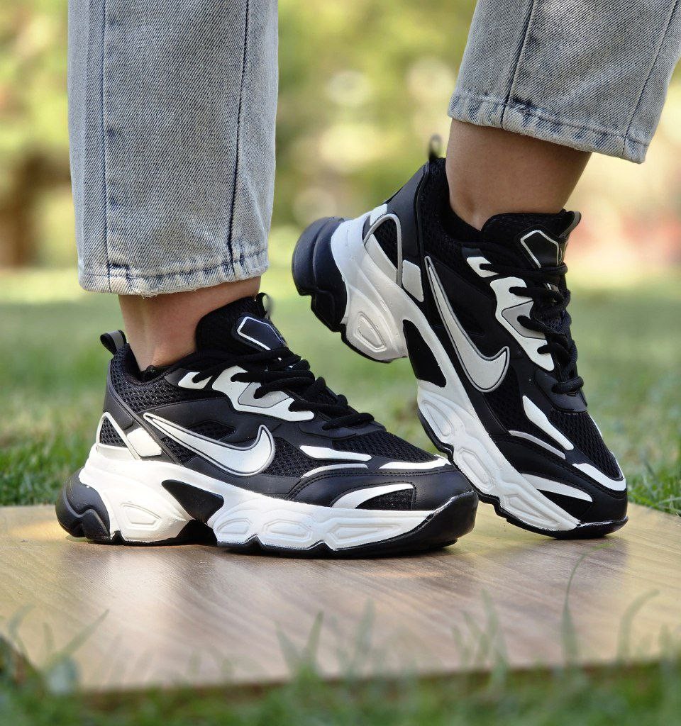 تخفیف خارق العاده کفش کتونی اسپرت زنانه دخترانه مدل نایک بی نقص و درجه یک رنگ مشکی سفید با ارسال رایگان