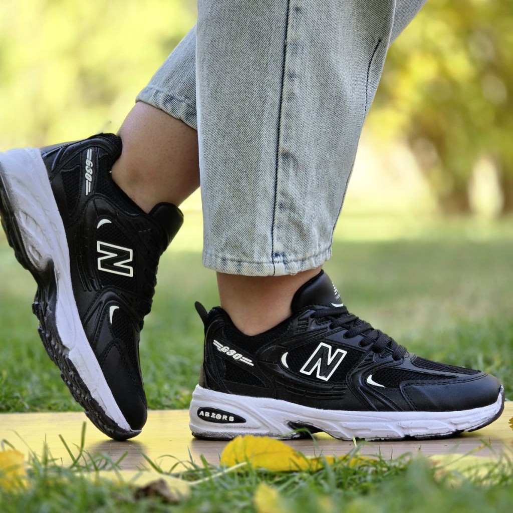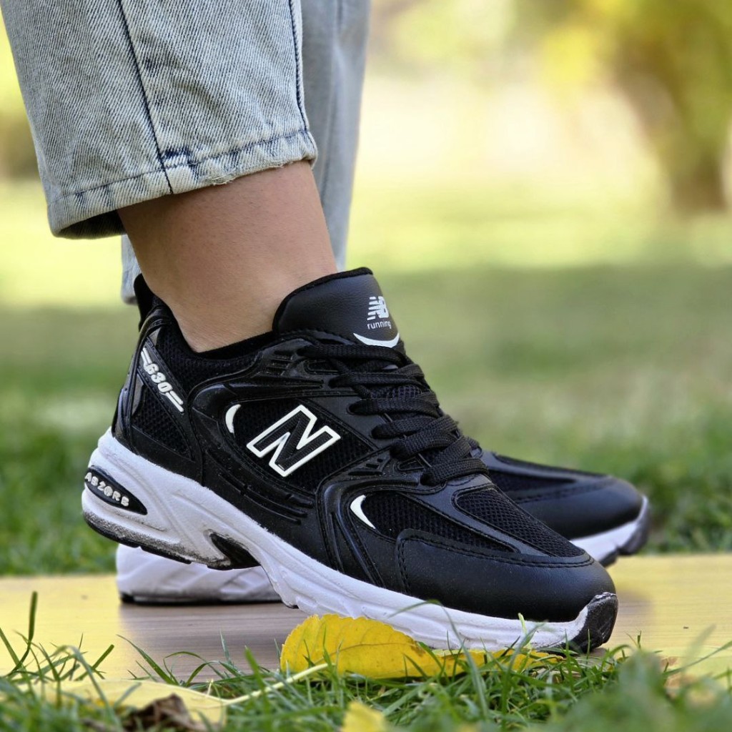 فروش واقعی ست کفش کتونی اسپرت زنانه و مردانه مدل نیوبالانس 530 خاص و ترند رنگ مشکی زیره سفید با ارسال رایگان