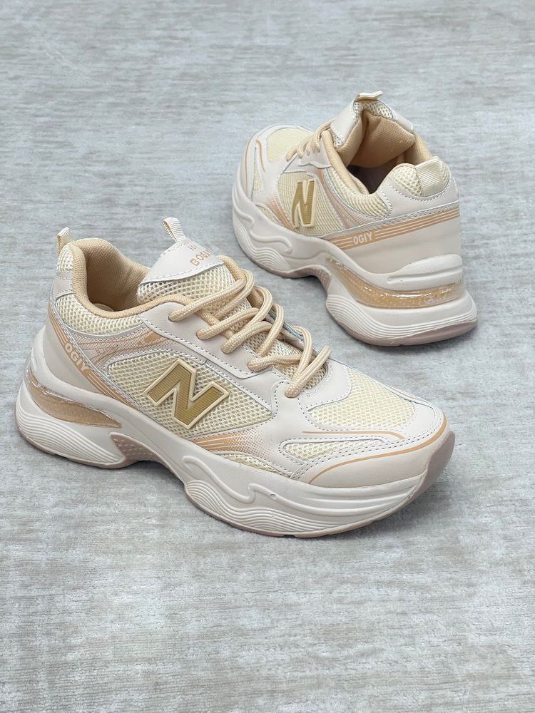 تخفیف باورنکردنی کفش کتونی اسپرت زنانه دخترانه مدل نیوبالانس طرح کپسولی خوشپا و ترند رنگ کرم با ارسال رایگان