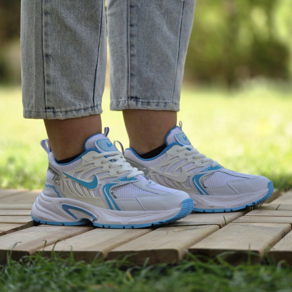 فروش خارق العاده کفش کتونی اسپرت زنانه دخترانه مدل نایک باظرافت و خاص رنگ سفید ابی با ارسال رایگان