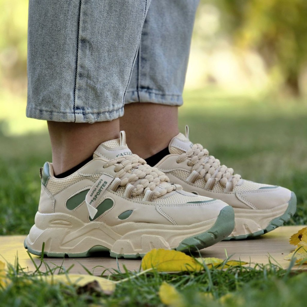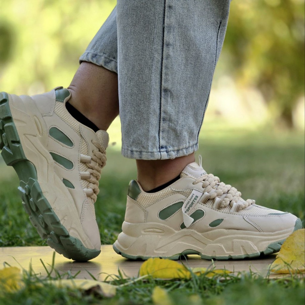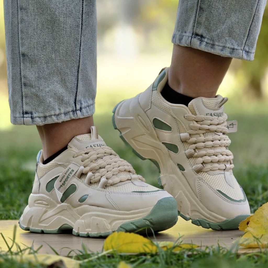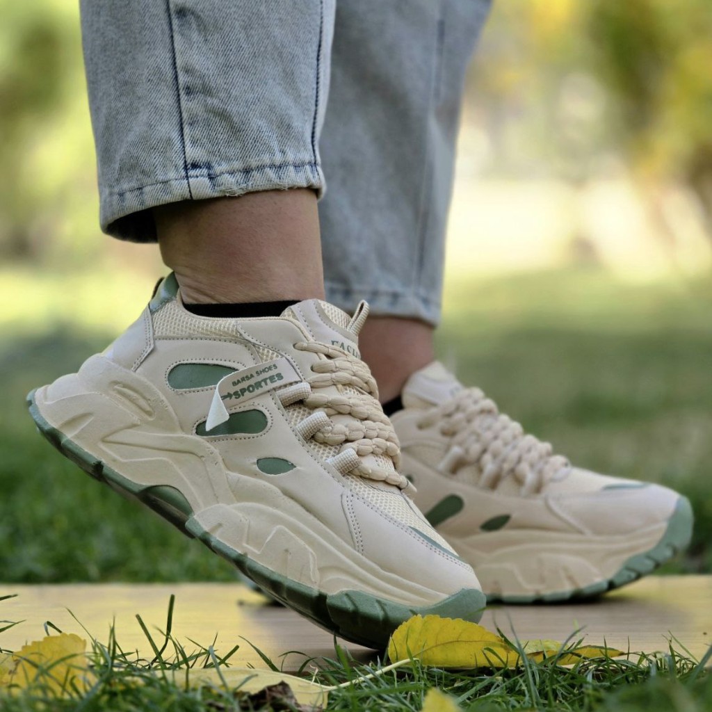 فروش رویایی کفش اسپرت زنانه دخترانه مدل فشیون تسبیحی دل ربا و خاص رنگ کرم سبز باارسال رایگان