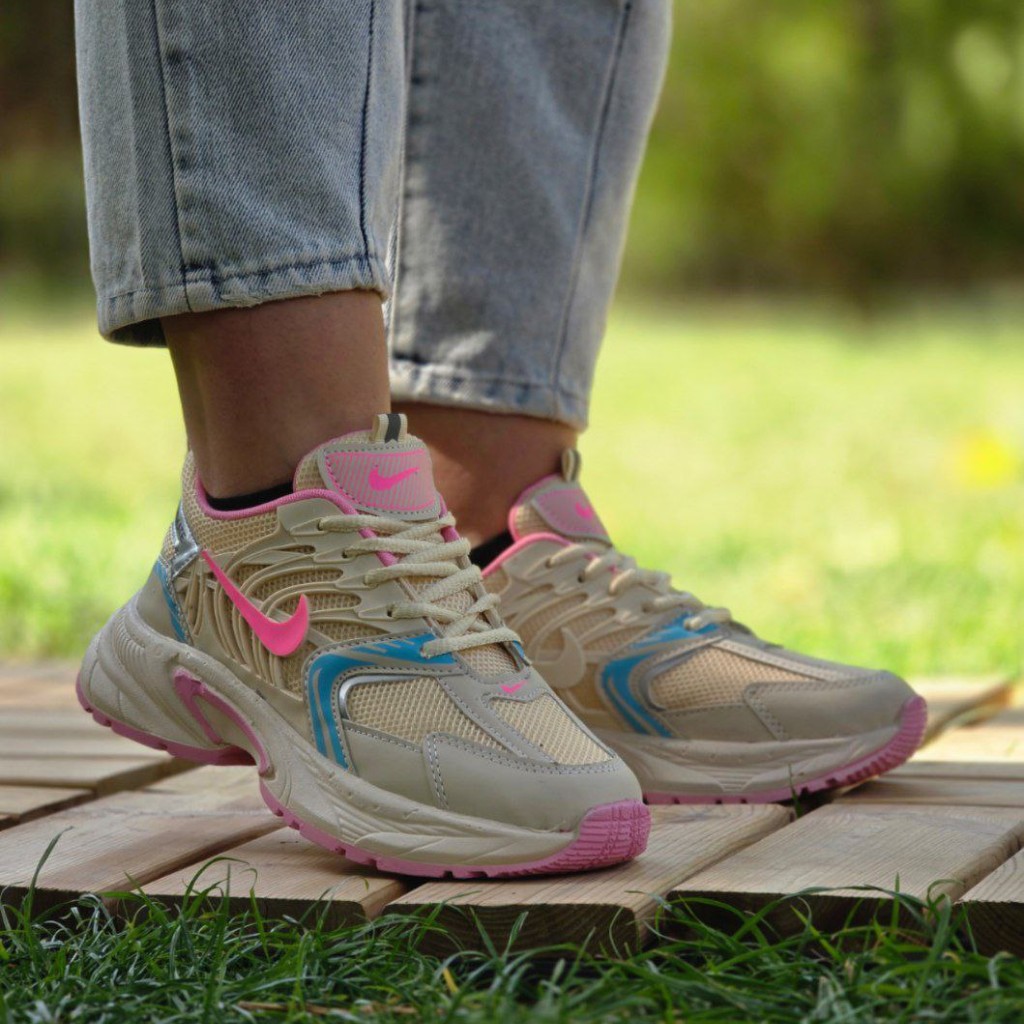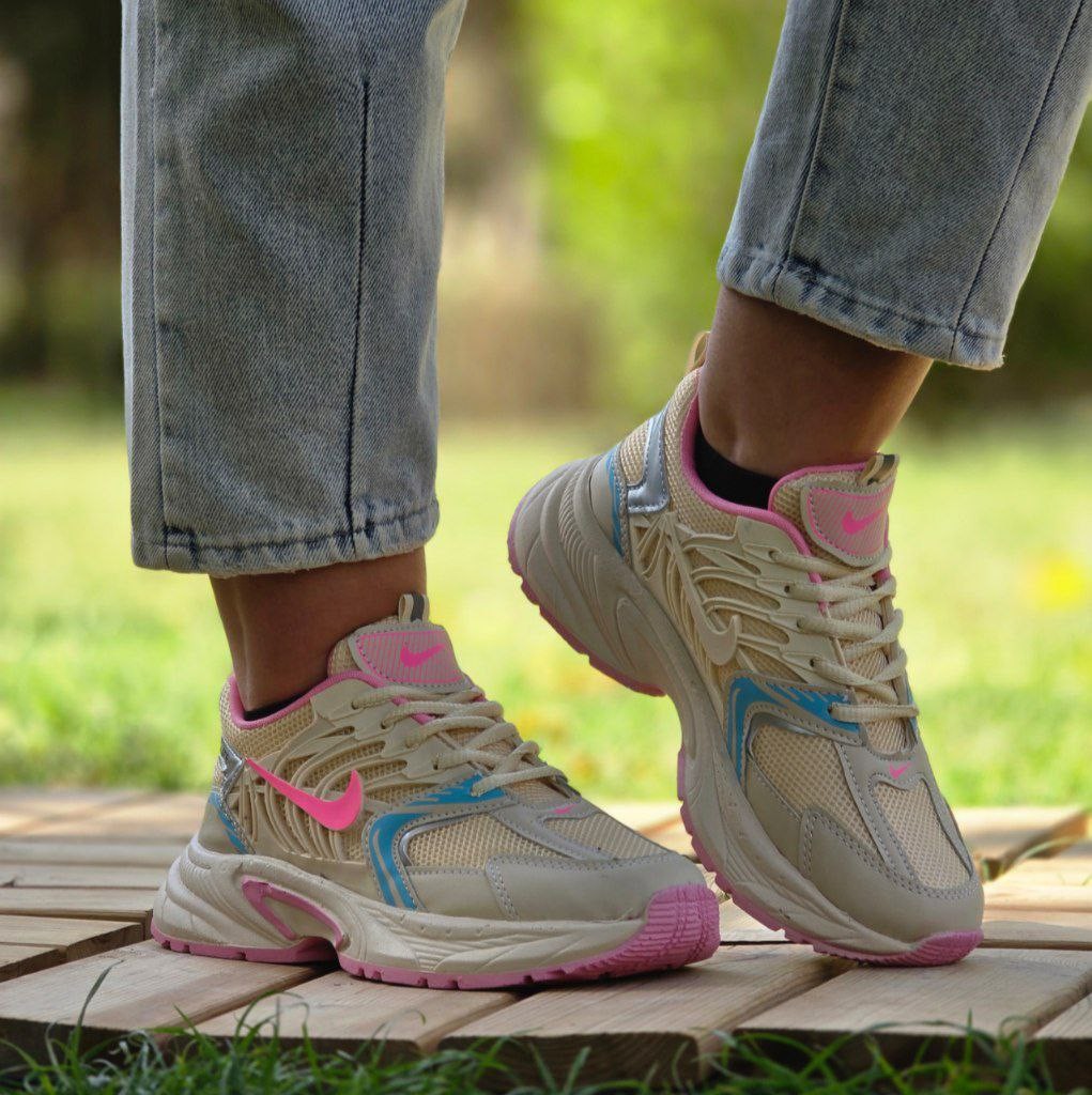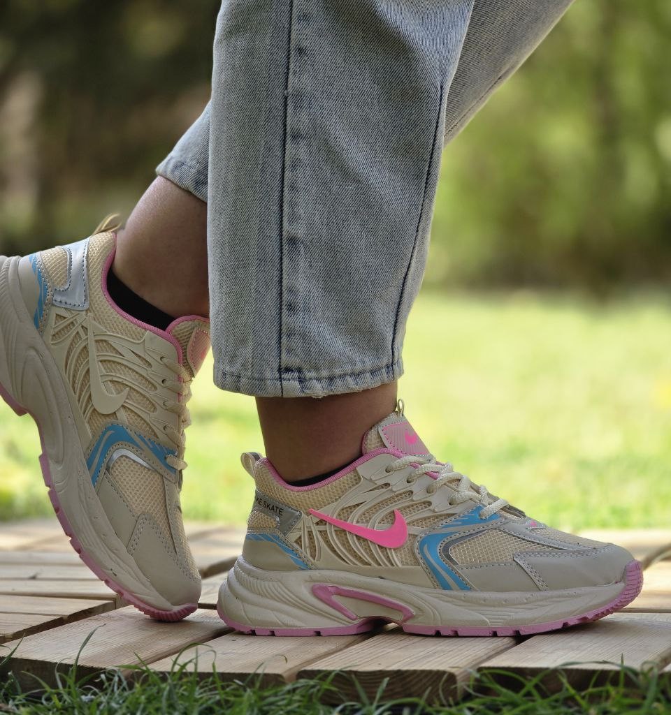 فروش شگفت اور کفش کتونی اسپرت زنانه دخترانه مدل نایک خاص و جذاب رنگ کرم صورتی ابی با ارسال رایگان