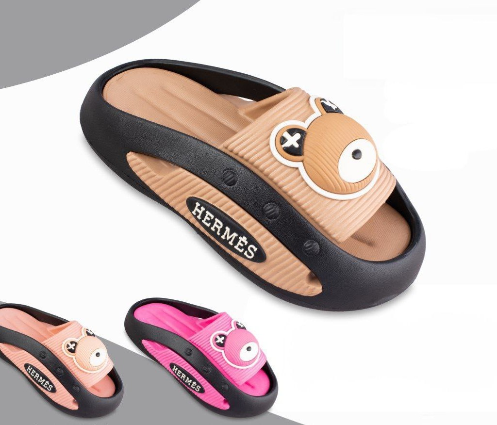 حراج جدید دمپایی صندل زنانه دخترانه کرومی مدل جسیکا با طرح خرسی عالی و بامزه رنگ مشکی قهوه ای باارسال رایگان