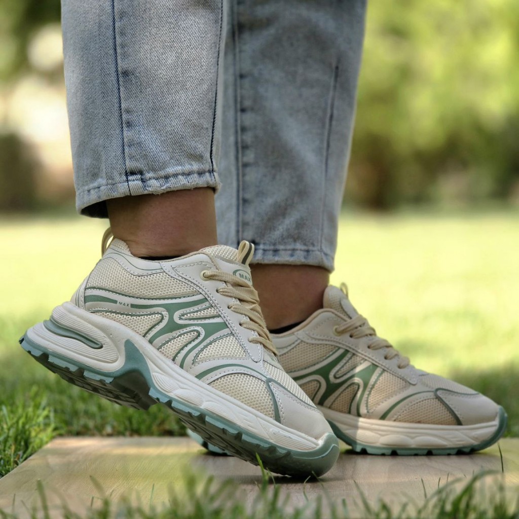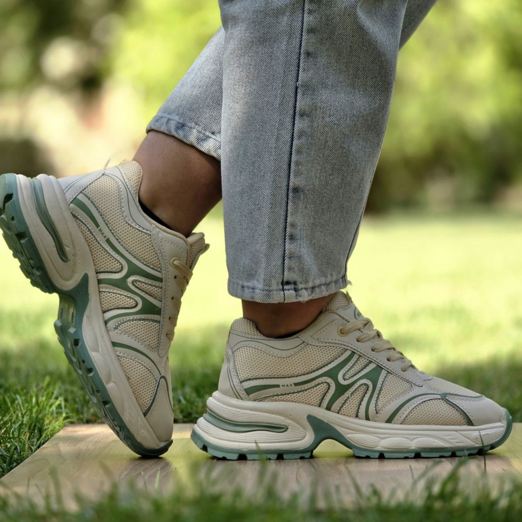 حراج باشکوه کفش کتونی اسپرت زنانه مدل مکس مات و مینیمال رنگ کرم و سبز با ارسال رایگان