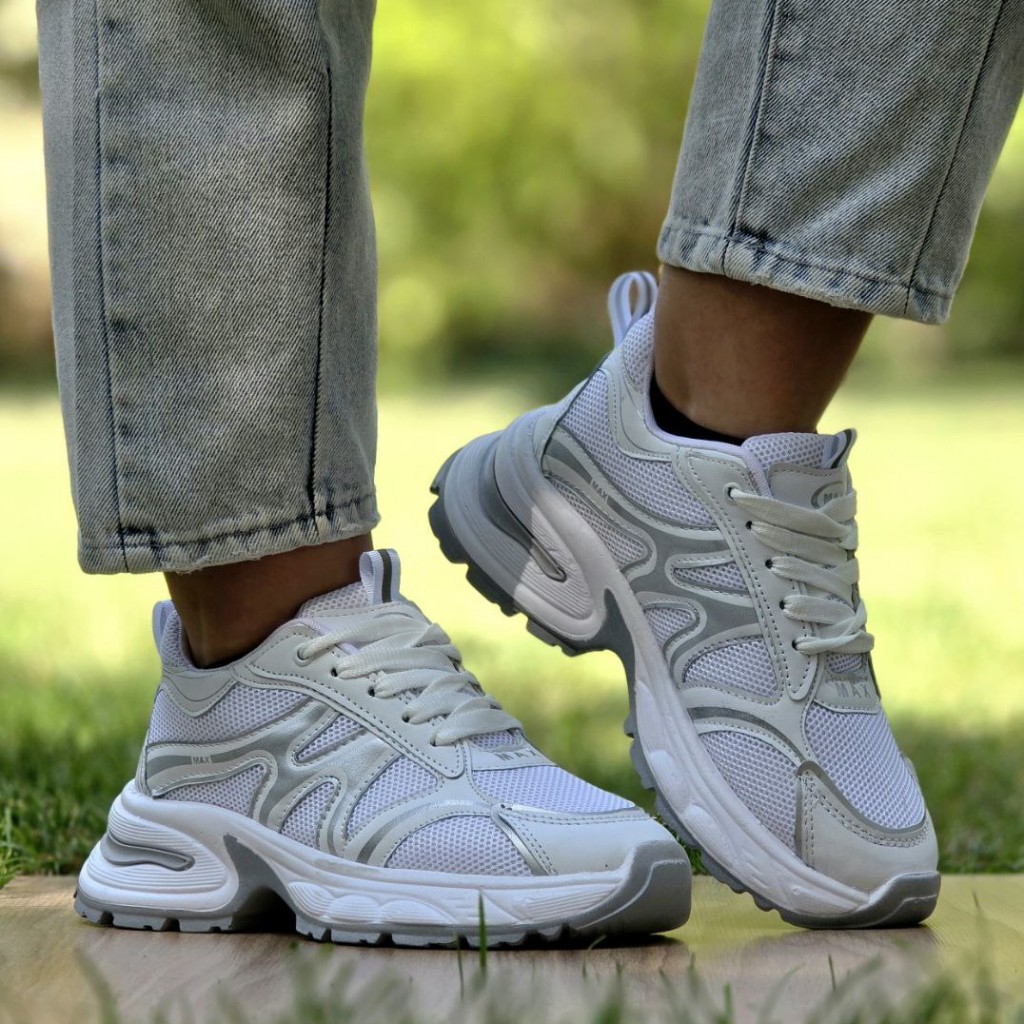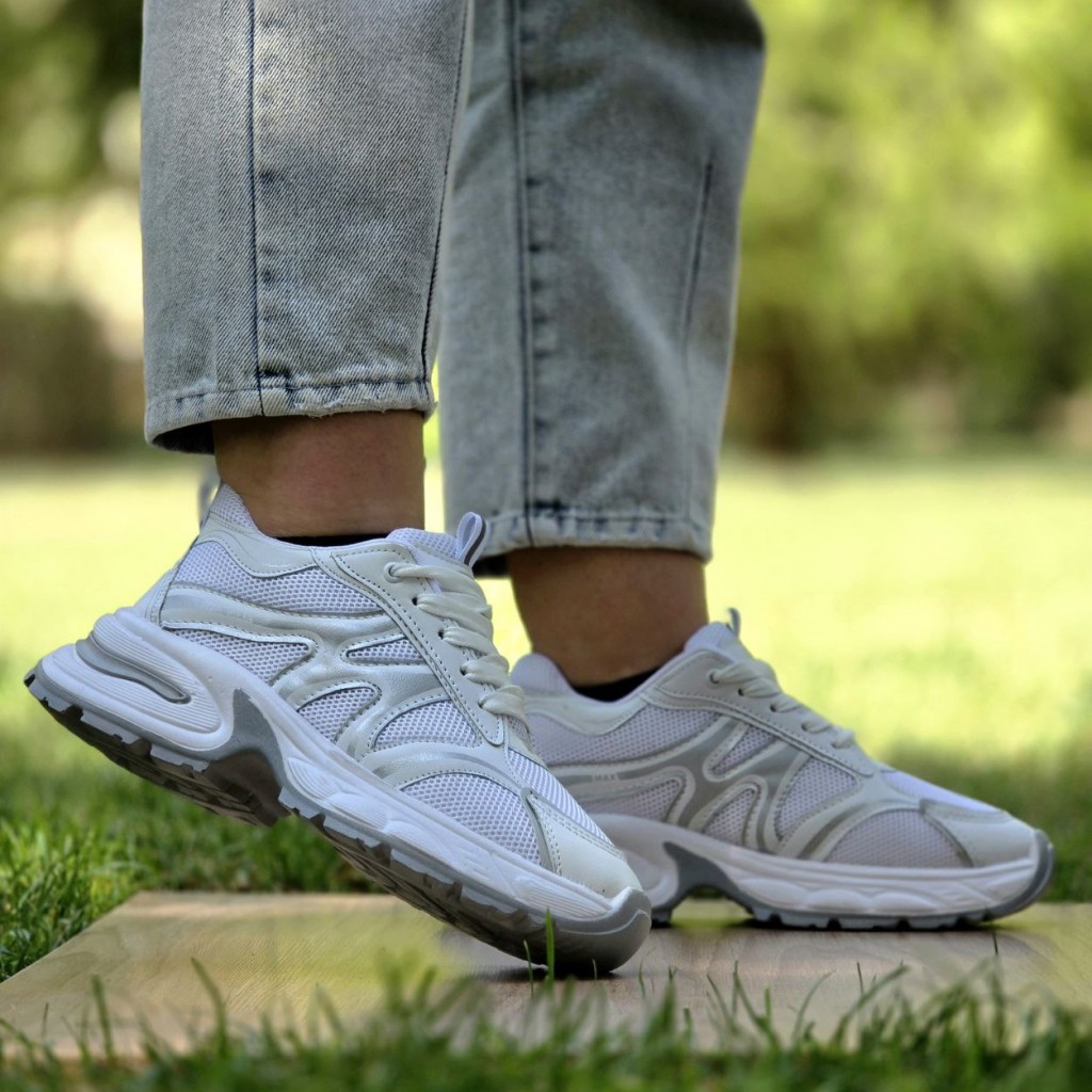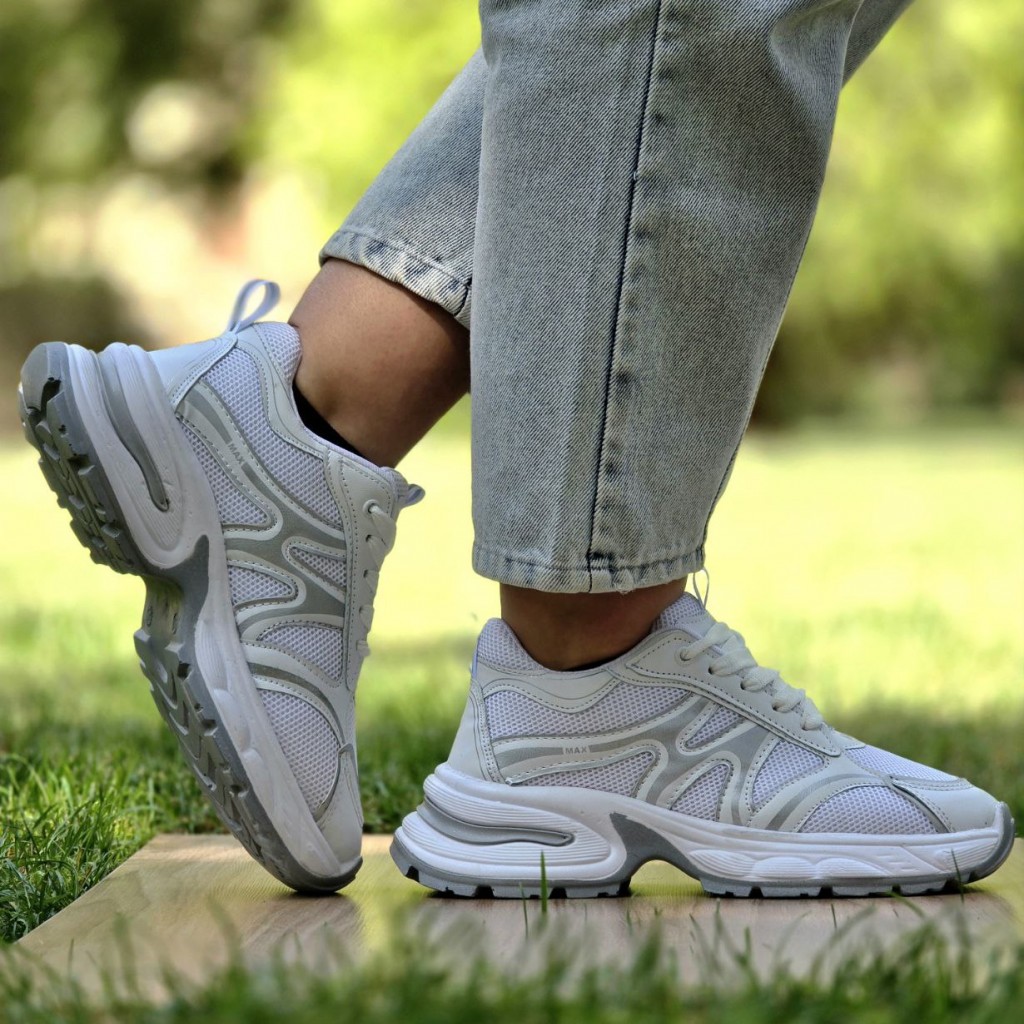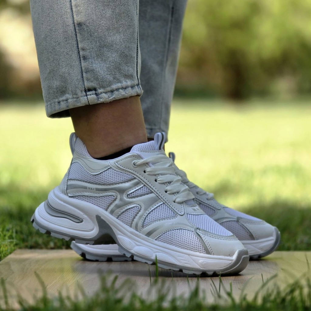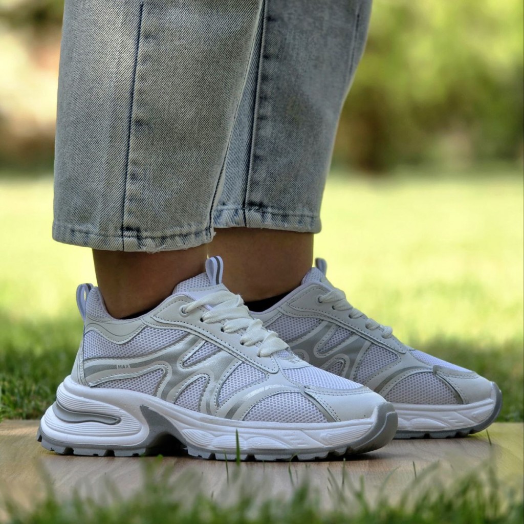حراج نهایی کفش کتونی اسپرت زنانه مدل مکس نفیس و باکیفیت رنگ سفید و نقره ای با ارسال رایگان
